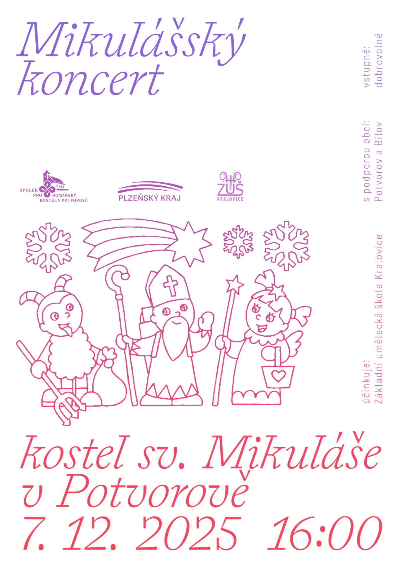 V neděli 7. 12. se můžeme těšit na tradiční Mikulášský koncert. Vystupovat budou děti z hudební školy v Kralovicích.