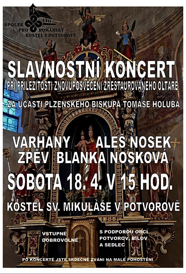 V sobotu 18. dubna 2026 v odpoledních hodinách oslavíme návrat hlavního oltáře do kostela v Potvorově. Všichni jsou srdečně zváni, uložte si tento datum do vašich diářů.